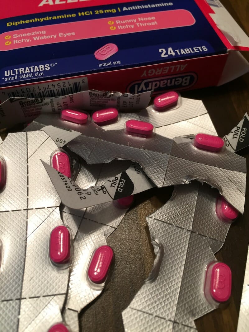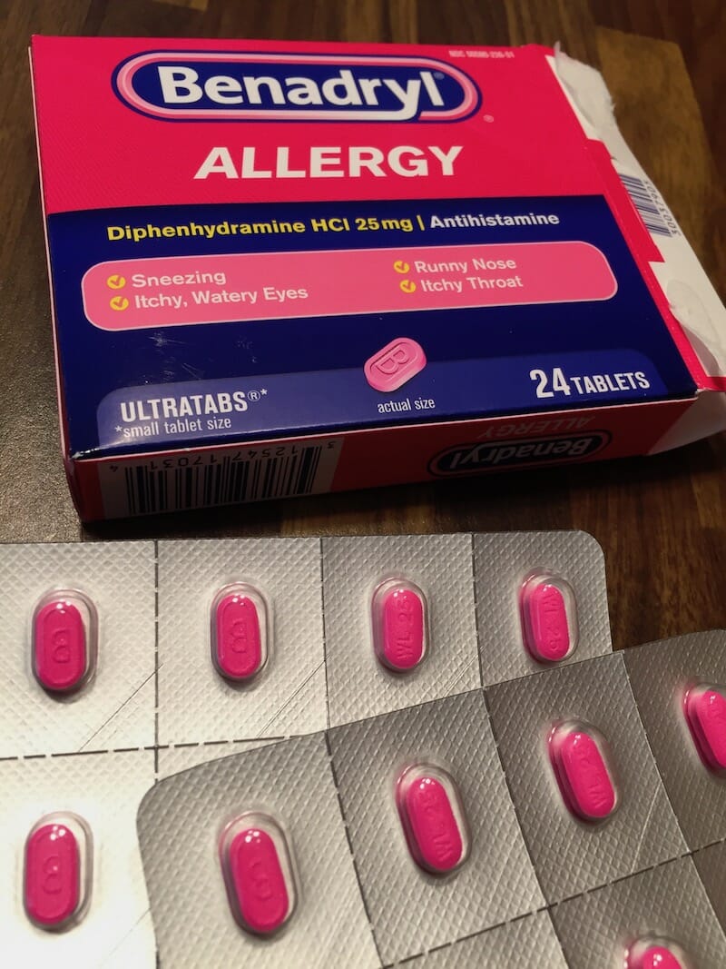 My Benadryl stock-up takes place twice annually, at least. Sometimes I luck into a Costco deal—three boxes holding 48 tablets or a total of 144. Thankfully, I don’t take them daily and I rarely need more than one to get the job done?