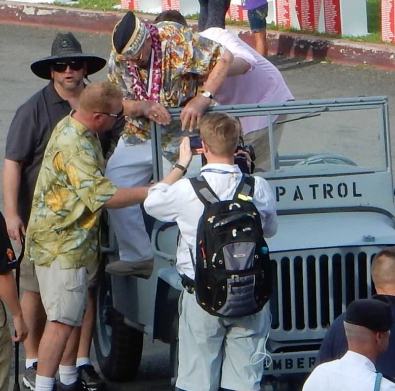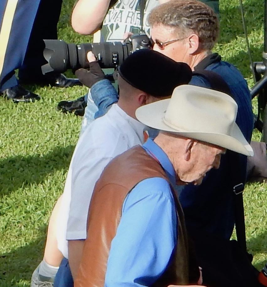 The crowd was respectful and comprised a wide variety of people. From the second floor of the bunker, we tried to snap pictures of the men as they arrived. My heart melted a little (more) with each one who walked, perhaps a hand on the arm of a young solider, perhaps with a cane. But they walked, every single one of them, and made their way from vehicle to chair.