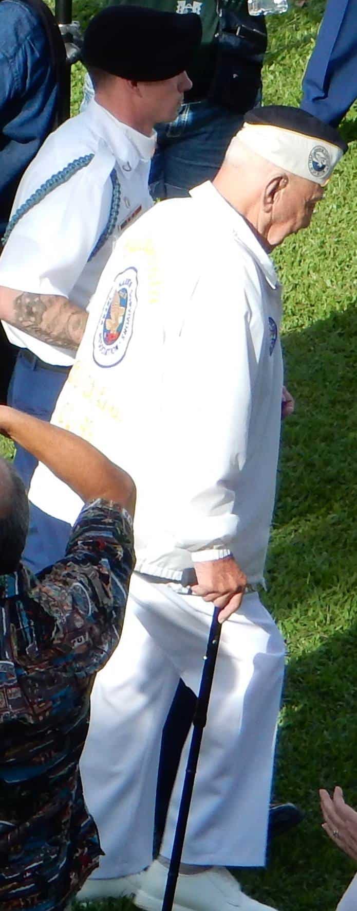 For a moment, one soldier stood by himself so I took the opportunity to say hello and ask a bit about him. Captain Jerry Yellin is an author and is currently seeking funding for a film project about his life, Last Man Standing. One of his books is, ā€œOf War and Weddings,ā€ which tells the true story of his son marrying a Japanese woman whose father was a Kamikaze pilot. In our brief minutes together, Mr. Yellin conveyed the impact this had on his hostile feelings toward the Japanese. Mr. Yellin has the distinction of being the fighter pilot who flew the last combat mission of the war.