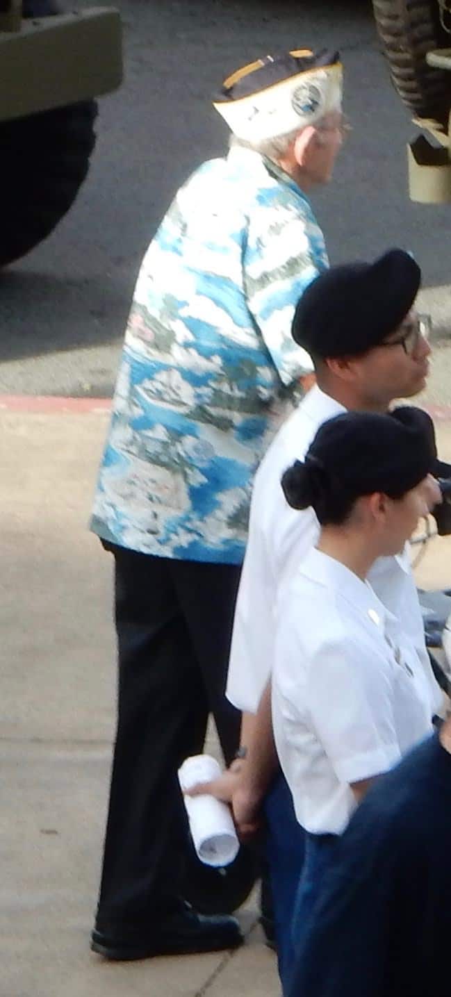 In walking from the Fort to the stage area for Gary Sinise’s pre-parade events, I had a hard time keeping pace with this 93-year-old. He’s fit, trim, and obviously a man with a purpose. Or several of them. He said that he’d lost his wife of 65 years the previous year and I asked how he stayed married for that long. He had three pieces of advice: respect each other, give space to your partner, and provide support. Sounds good to me.