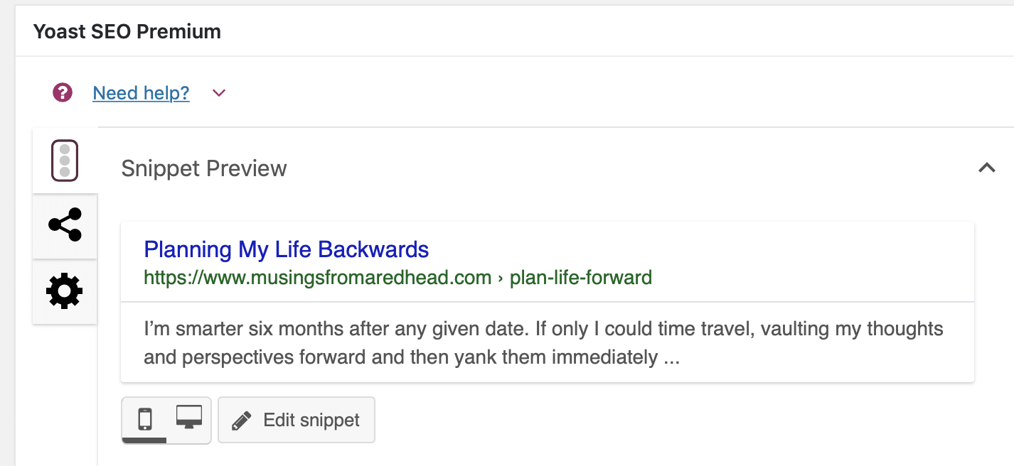 Yoast screen shot of snippet in WordPress